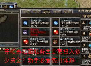 传奇私服服务器需要投入多少资金?新手必看费用详解" alt="开传奇私服服务器需要投入多少资金?新手必看费用详解" />